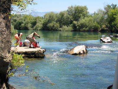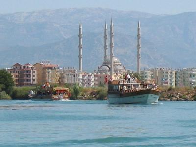 über See, und dann den Manavgat-Fluß entlang, wo man Wasserschildkröten,